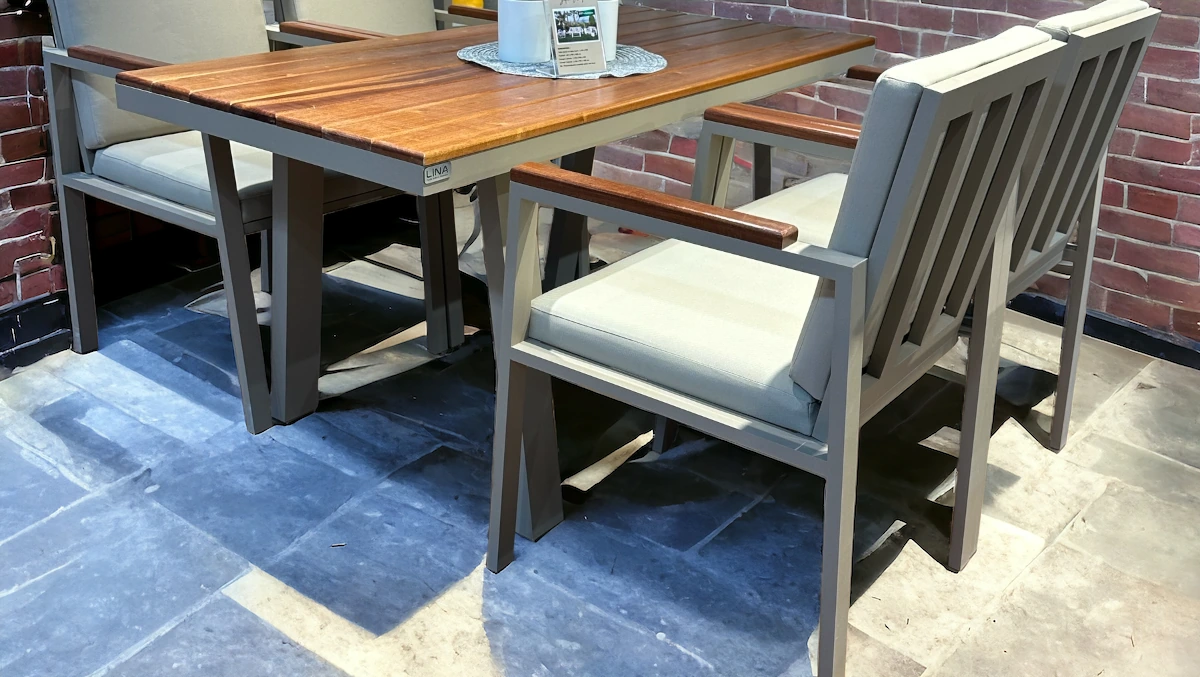 Créez un espace de repas extérieur confortable et élégant avec cet ensemble "Athènes" en aluminium, parfait pour les petits espaces et les moments intimes en plein air.