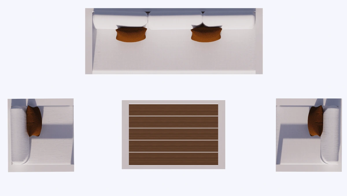 | Dimensions | Canapé 3 places (cm) : L. 190 x P. 74 Canapé 2 places (cm) : L. 138 x P. 74 fauteuil (cm) : L. 70x P. 74 Table (cm) : L. 116x P. 60x H.50 |